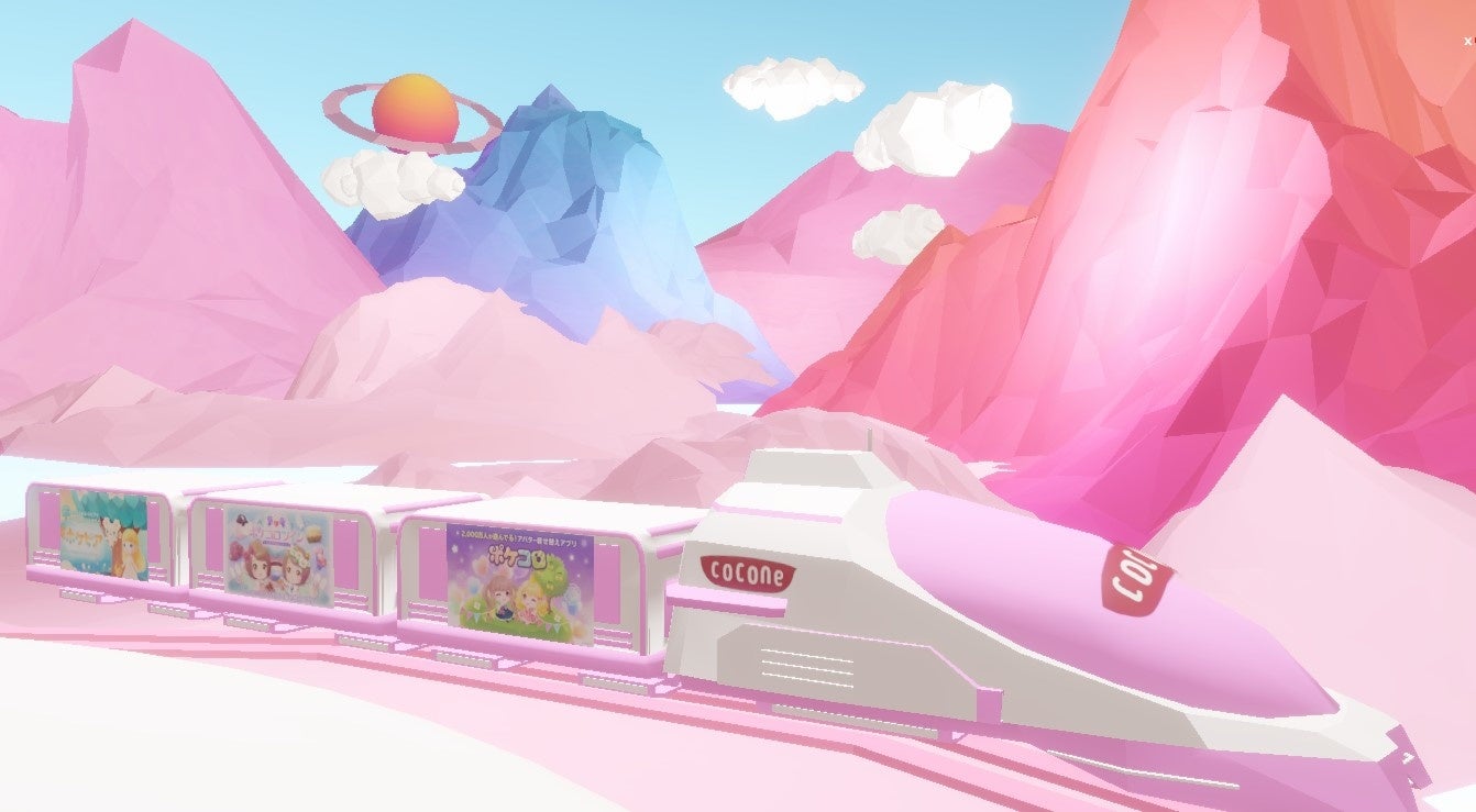 「バーチャルTGC」内にはワールドを一周する列車が走っており、今回のコラボ企画としてココネ仕様にラッピングされた列車が登場します。