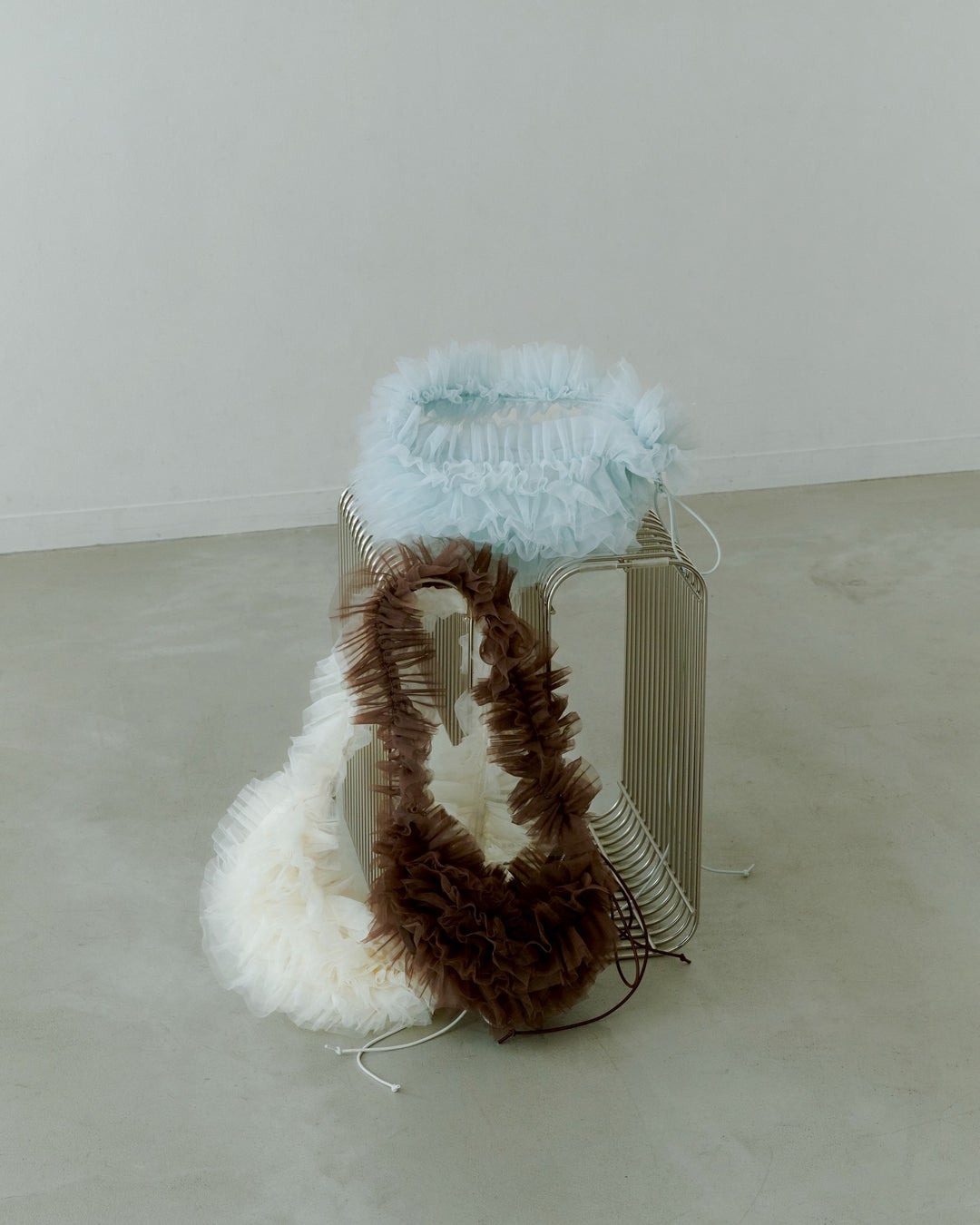 チュールをふんだんに使用したモード感たっぷりのショルダーバッグ。半月型デザインにフリルを贅沢につかいシーズンムードが高まるアイテムです。