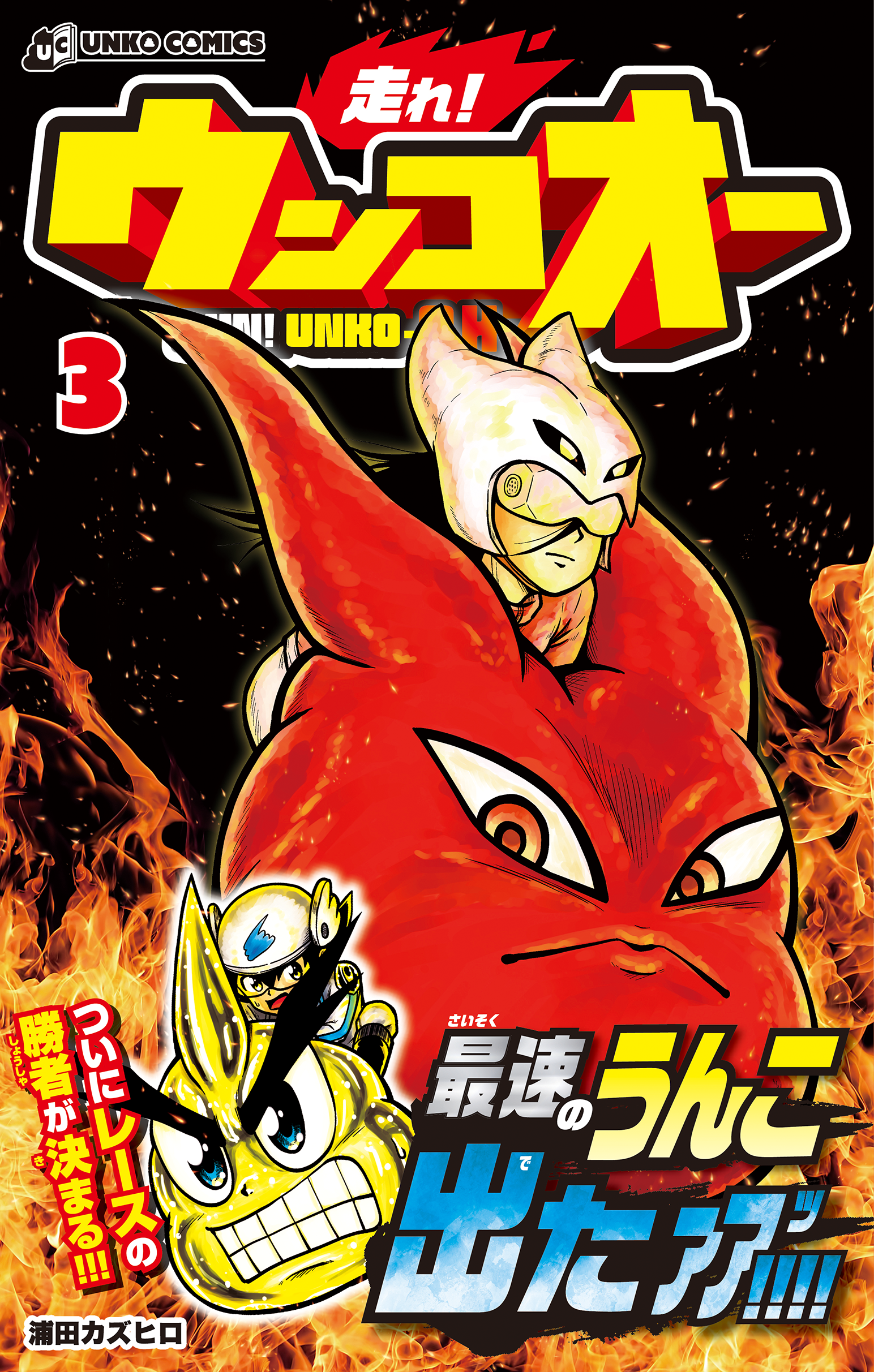 出た!決まった!最速の「うんこ」!!うんこコミックス レーベルから熱血レース漫画の第3巻、ついに大会の勝者が決まる!
