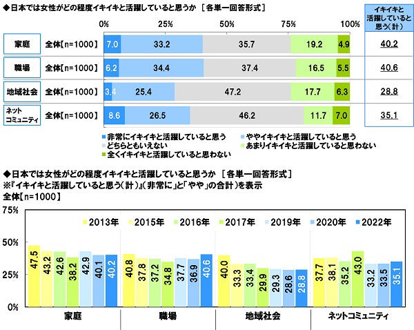 ◆「職場で女性がイキイキと活躍していると思う」女性の41%
