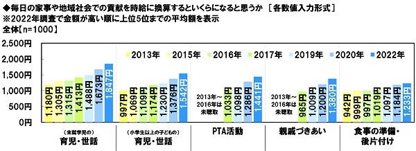 「未就学児の育児・世話」は平均1,847円、前回調査から174円増加
