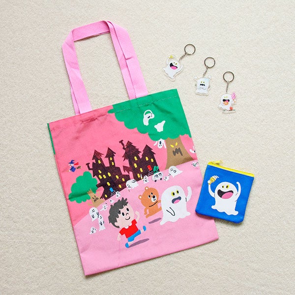 こちらは童謡が絵本になった『おばけなんてないさ』(絵:中川貴雄/フレーベル館)のグッズ。トートバッグとミニポーチ、アクリルキーホルダー3種類が揃いました。表情豊かなおばけが可愛らしく、揃えて持ち歩きたくなるアイテムです。