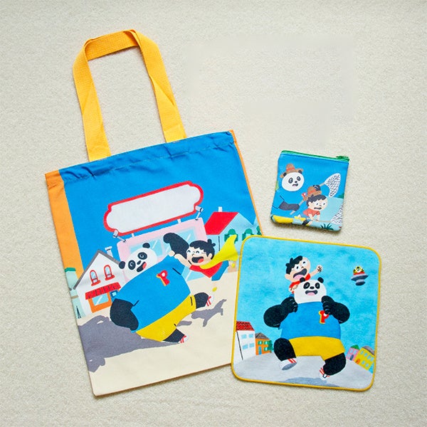 中川貴雄さんが文章と絵を手掛けた絵本のデビュー作『パンダとうさん』(岩崎書店)。こちらの作品からはトートバッグとハンドタオル、ミニポーチの3種類が誕生しました。絵本のポップな色鮮やかさをそのままに、手にするだけで元気をもらえるデザインです。
