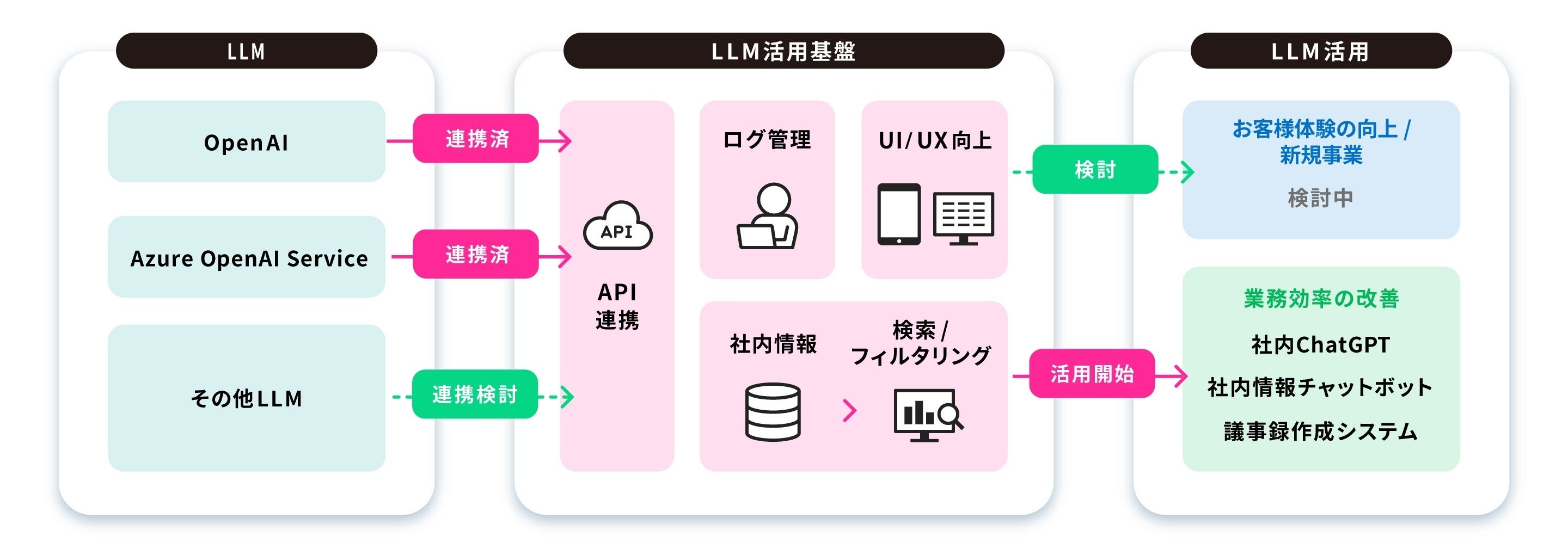 今後は、より多くのビジネス課題を解決していくため、内製で構築したLLM(大規模言語モデル)活用基盤にて、業務知識が必要な問い合わせなども生成AIが作成した文章で回答できるように開発し、全社をあげて生成AIを前提とした業務プロセスの見直しに取り組んでまいります。また、社内での活用から得られたノウハウや、当社が保有するデータやAI技術と組み合わせ、新たなサービスの創出も目指してまいります。
