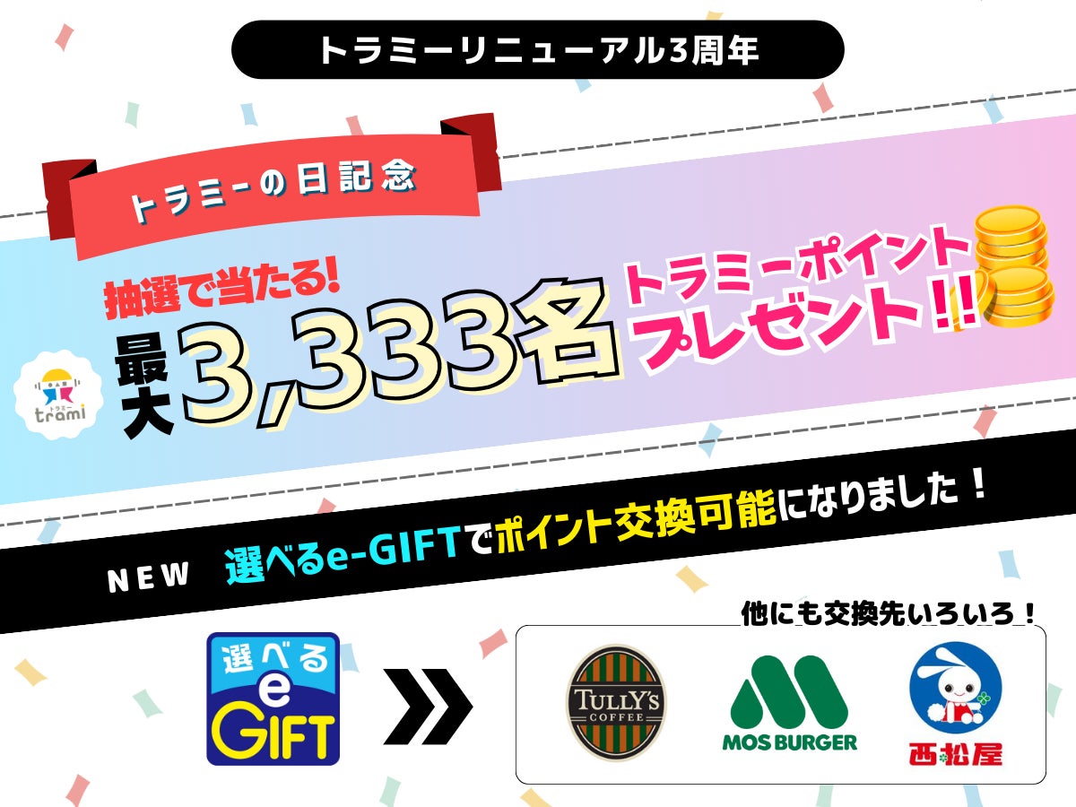【トラミー】抽選で最大3,333名に当たるポイントプレゼントキャンペーンを開催