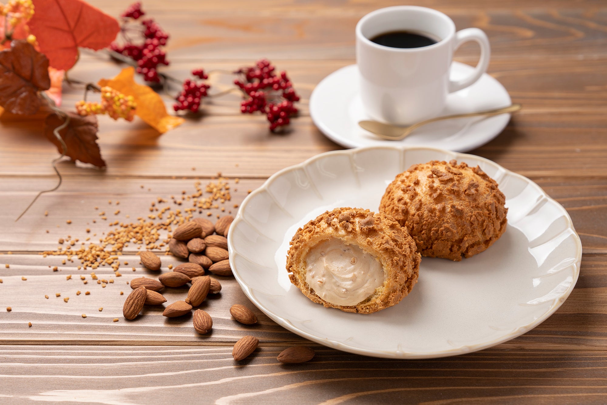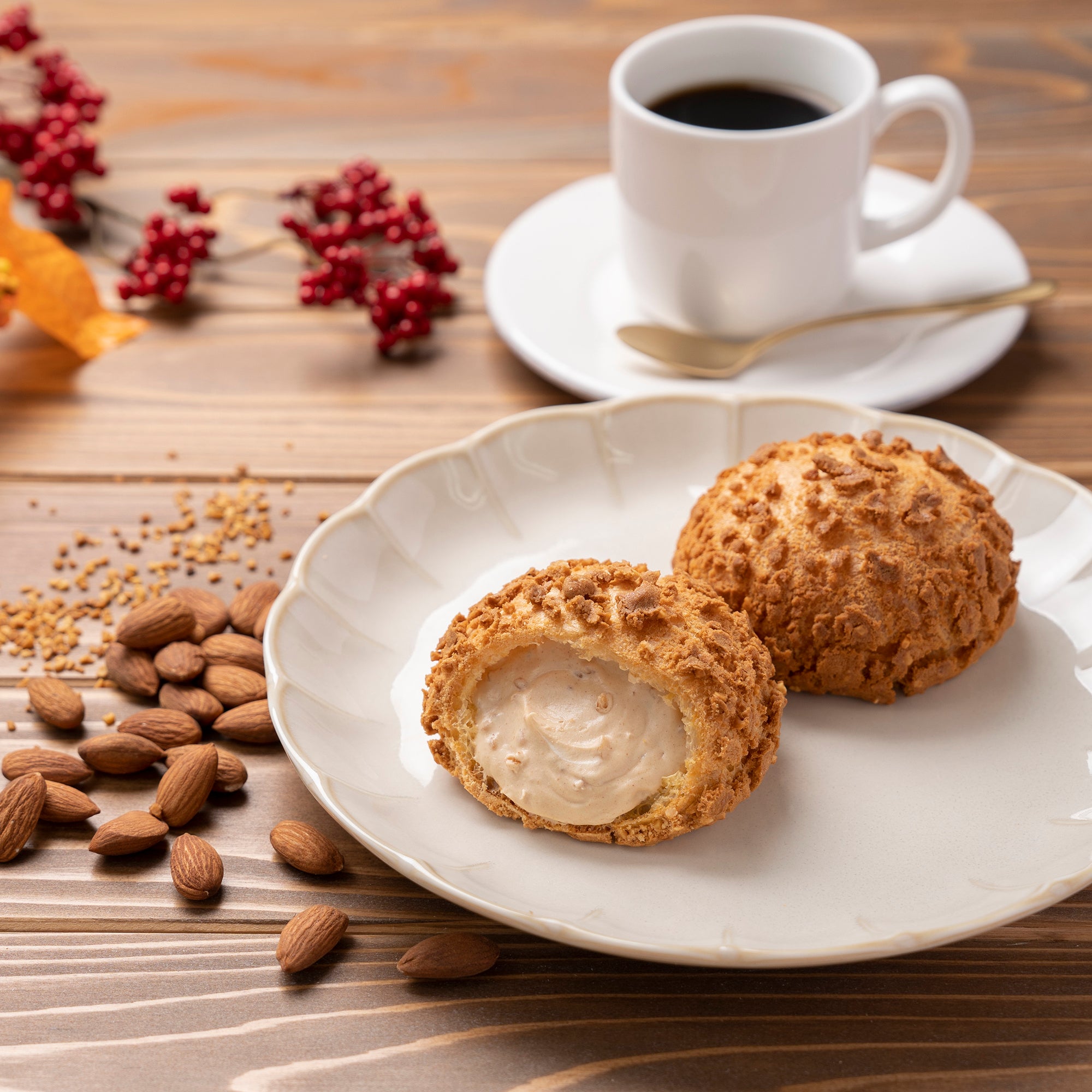 キャラメリゼが味わい深いアーモンドプラリネクリームをアーモンドをちりばめた香ばしいシュー生地にとじこめました。