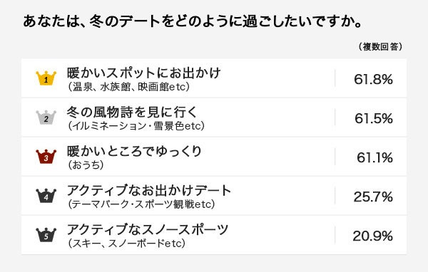 過ごしたい冬デートの第1位は○○、これは誰もが納得?