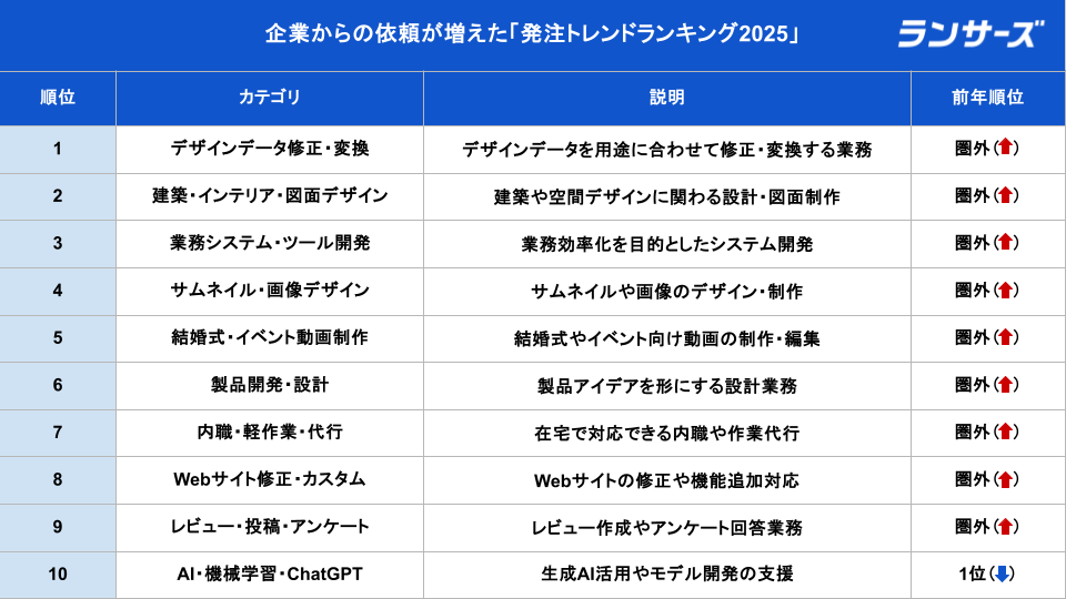 ランサーズ、企業ニーズが伸びた「発注トレンドランキング2025」をフリーランスの日に発表