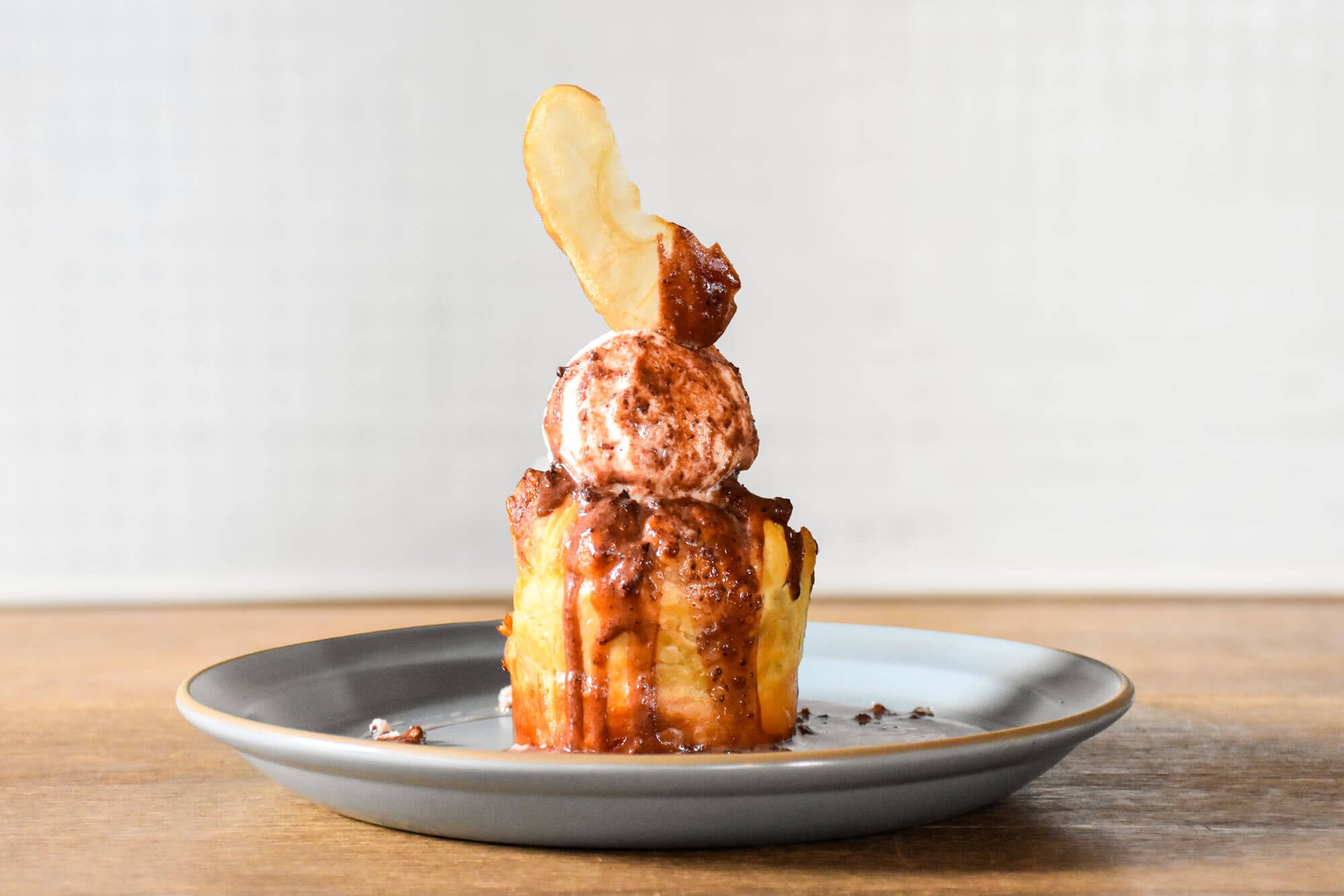 ・ソルベやソースで味わいの変化を楽しむ、ゴロゴロりんごと芳醇なチョコレートのアップルパイ