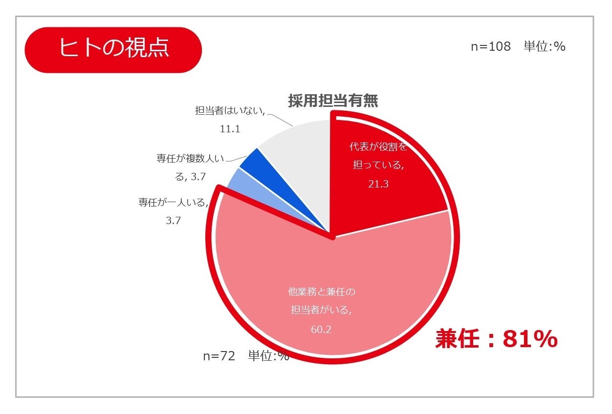 採用担当実務者については、81%が専任担当者がおらず、他業務と兼務している