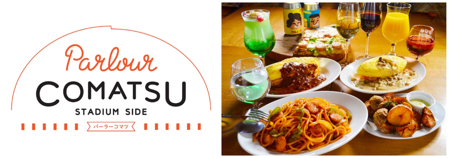 「パーラーコマツ スタジアムサイド」は、昼は絶品ランチ、夜はアットホームなビストロとして、幅広い世代の皆さまに親しまれ、お客さま同士のつながりができる居心地の良い場所となることを目指しています。スフレオムライスやナポリタンなどのバラエティ豊かなランチメニューから、クラフトビールやフルーツティー、パティシエが監修した本格的なスイーツまで、カフェやバーとしてくつろぎタイムにもぴったりのメニューを多数取り揃えています。