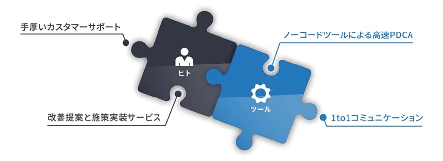 "テクノロジーの力"と"人の力"を掛け合わせ、人とサービスの間に存在する課題を解決するマーケティングソリューションカンパニーです。