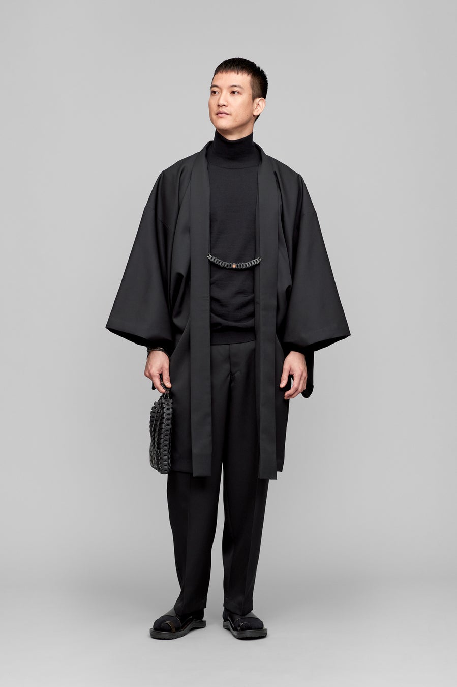 2025年秋冬では、Graphpaperの生地を使用したきもの・羽織・パンツのセットアップに加え、タートルネックや、スイスの老舗シャツファブリックメーカー〈ALUMO(アルモ)〉の生地を用いたシャツ、さらにきものの上から羽織れるコートを展開します。