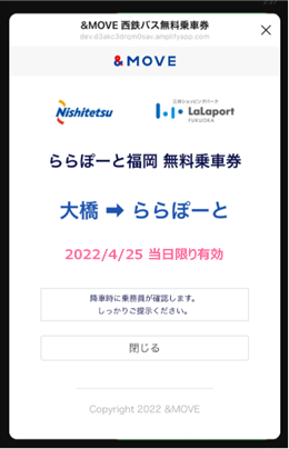 三井不動産のLINE公式アカウント &MOVEより、当日(9:00~)にご利用いただけるバスの無料チケットを