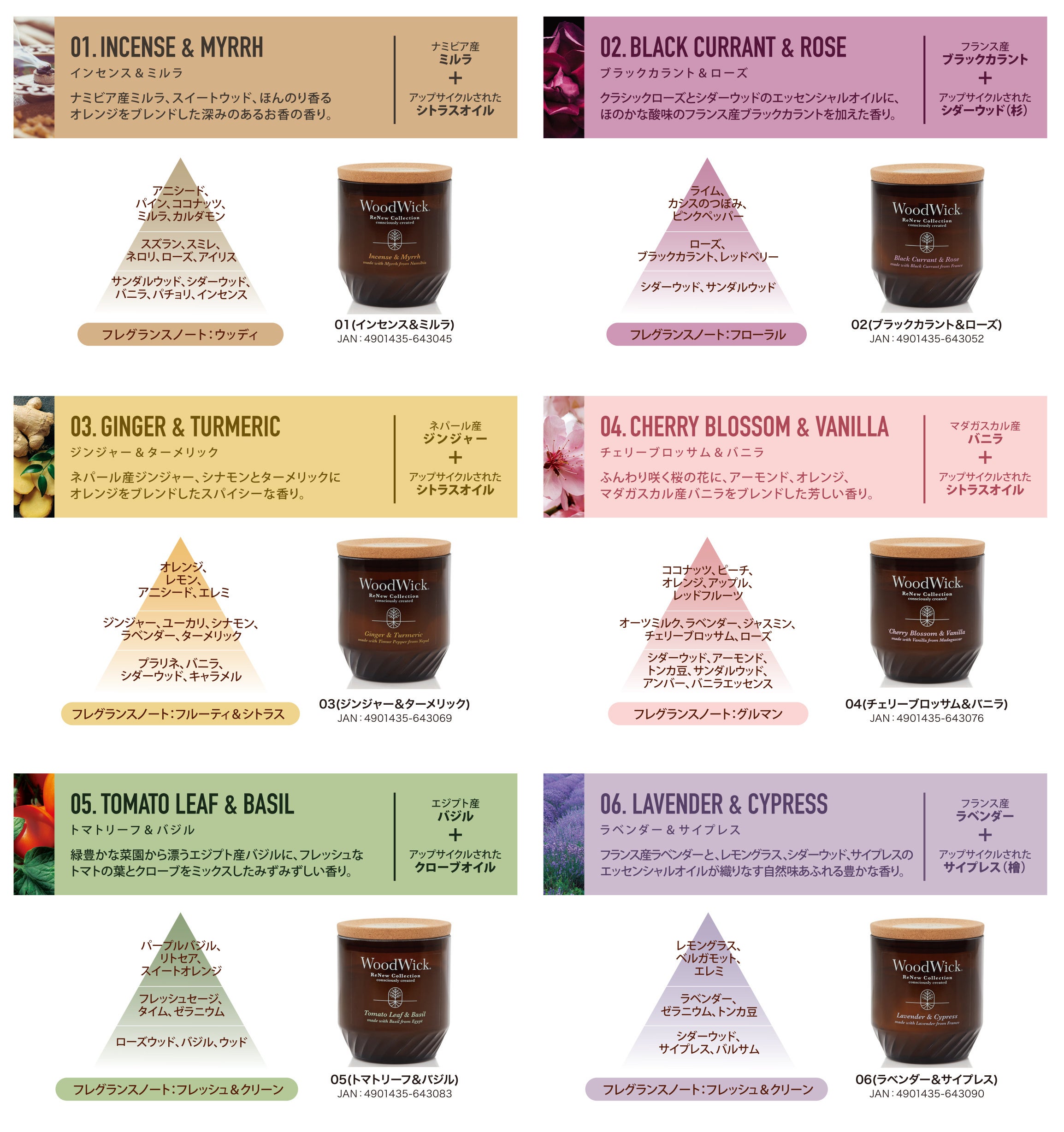 香りは6種類をご用意しました。(インセンス&ミルラのみ10月入荷予定)