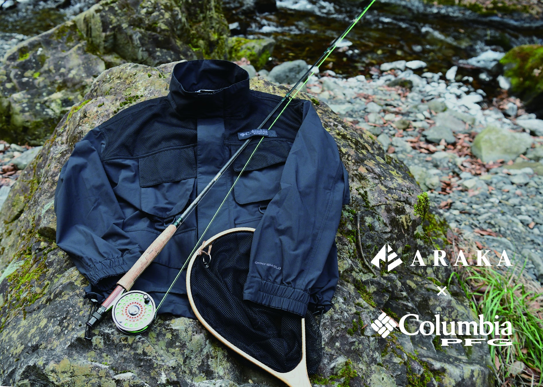 「ARAKA」と「ColumbiaPFG」の初のコラボレーションとなる同アイテムは、1960年代に開発されたコロンビア初のオリジナルアイテム、“マルチポケットフィッシングベスト”に使われていたフラップポケットやショダー部分のメッシュ素材を採用し、ブランドのDNAを感じることができるディテールを随所に落とし込んだソフトシェルジャケットです。フィッシングシーンで活躍する機能はもちろん普段使いも想定したデザインで、両ブランドのコンセプト“アウトドアをより身近に”を体現するアイテムに仕上がりました。表地には独自テクノロジー「オムニシールド」を搭載し日常使いにもストレスなく着用できる柔らかな生地感を残しながら、撥水防汚機能を加えました。スタンドカラーで重ね着のスタイリングアイテムとしても使い勝手の良い1枚になっています。