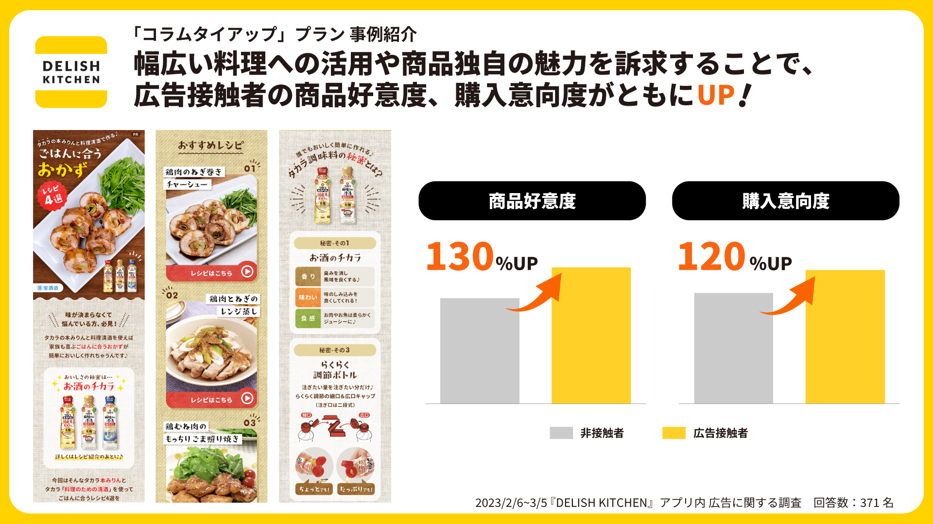 商品好感度、購入意向度が大幅アップ!『DELISH KITCHEN』内で商品の魅力をより深く訴求できる「コラムタイアップ」プランの提供を開始!
