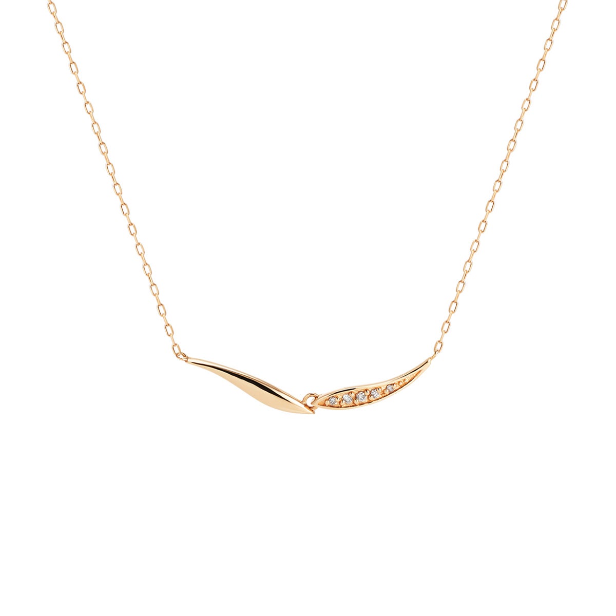 初夏の若葉を思わせるモチーフが重なるネックレスとピアスは、あなたとあなたの大切な方々との変わらない絆の象徴として輝きます。