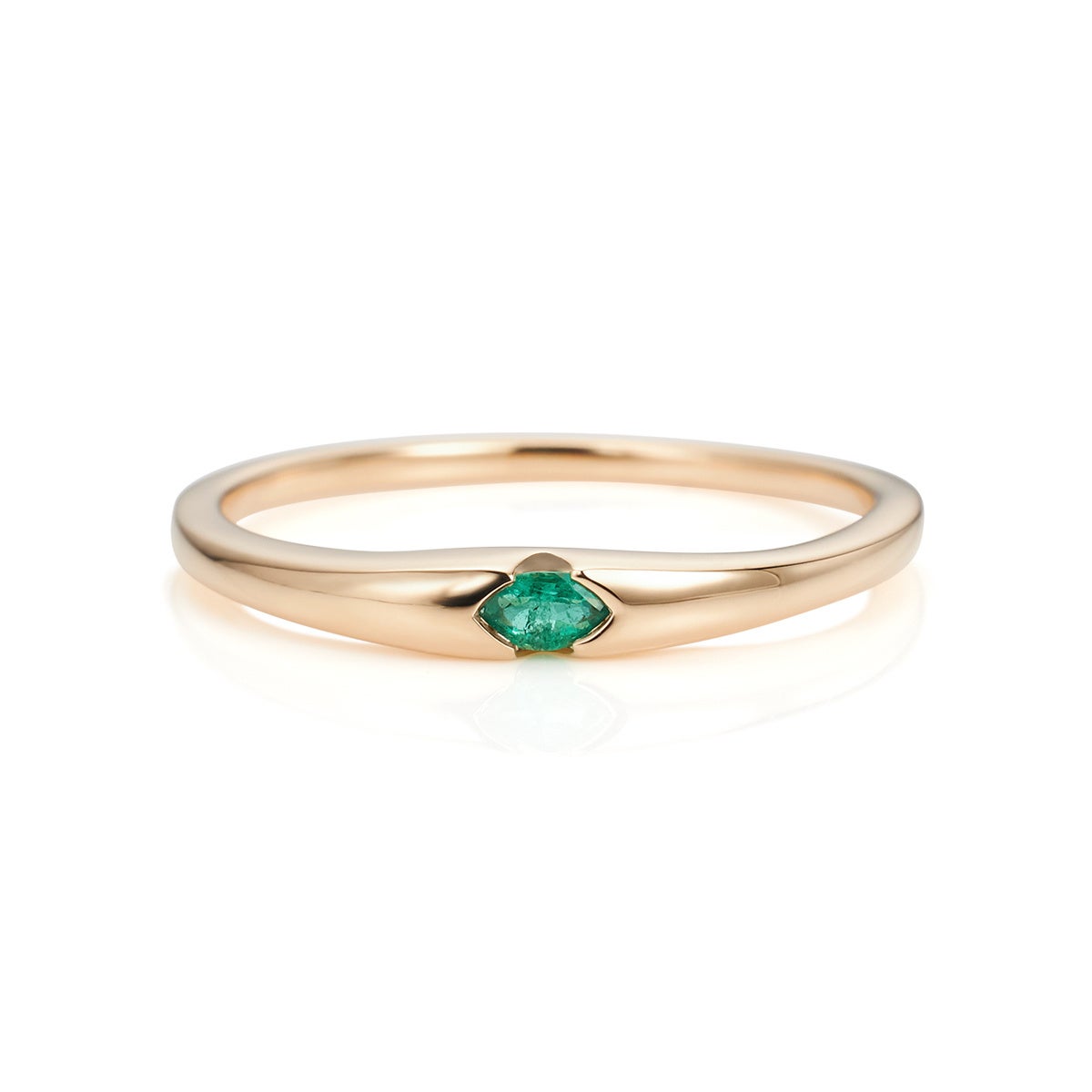 「希望」の石言葉を持つ、5月の誕生石であるエメラルドを4℃アクアゴールドのなめらかで優しい地金で包み込んだジュエリー。ミニマルでモダンな輝きは、どの世代の方々にも寄り添う不変の美しさを放ちます。