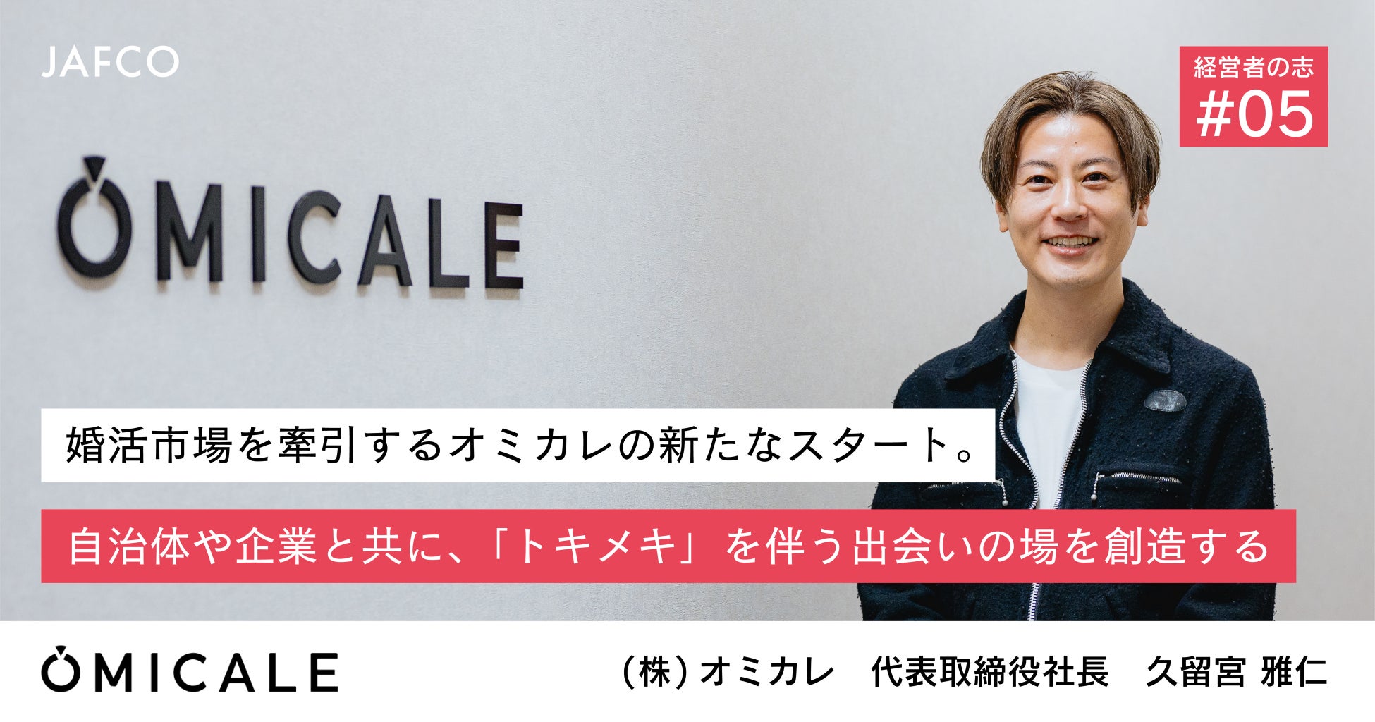 会員数100万人超、「今月行ける婚活パーティー・街コン」掲載数日本No.1※の婚活情報サイト運営や、全国の自治体における恋活支援を行う株式会社オミカレ(本社:東京都渋谷区、代表取締役社長:久留宮 雅仁、以下「オミカレ」)は、ベンチャーキャピタル大手・JAFCOのオウンドメディアにて代表インタビューが掲載されたことをお知らせいたします。