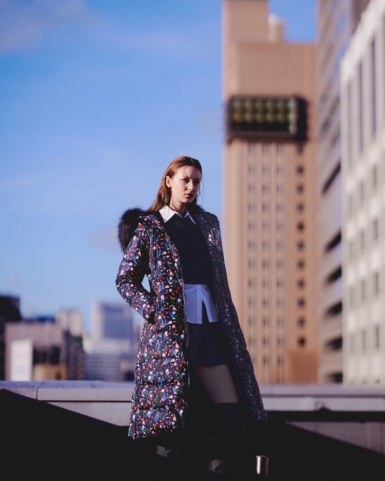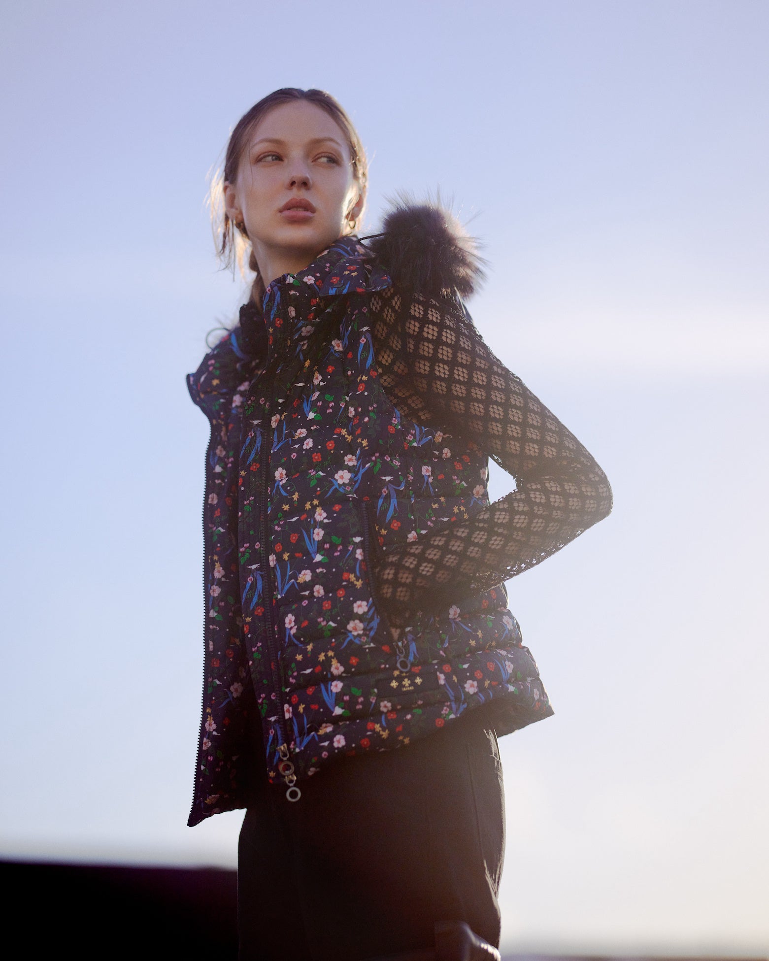 花柄を使用することでダウンジャケットの表情をより豊かに、華やかで洗練されたアイテムとして提案します。