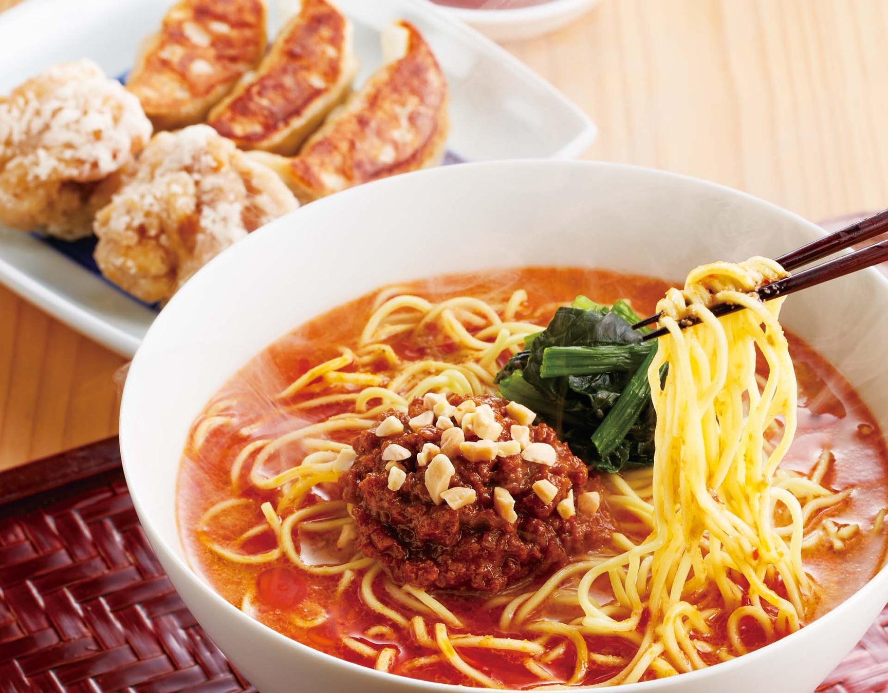 花椒の爽やかな香りと胡麻のコクが決め手のメニュー。スープは辛味、ゴマの香り、ナッツの食感が三位一体となった本格的な味わいです。セットは唐揚げと餃子・ライスが付いて超お得!