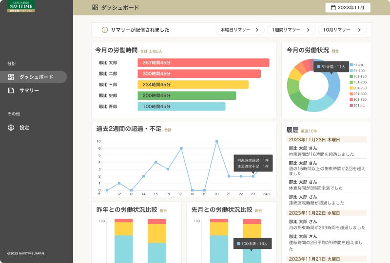 『ビジネスナビタイム 動態管理ソリューション』、「労働状況可視化ツール」提供開始
