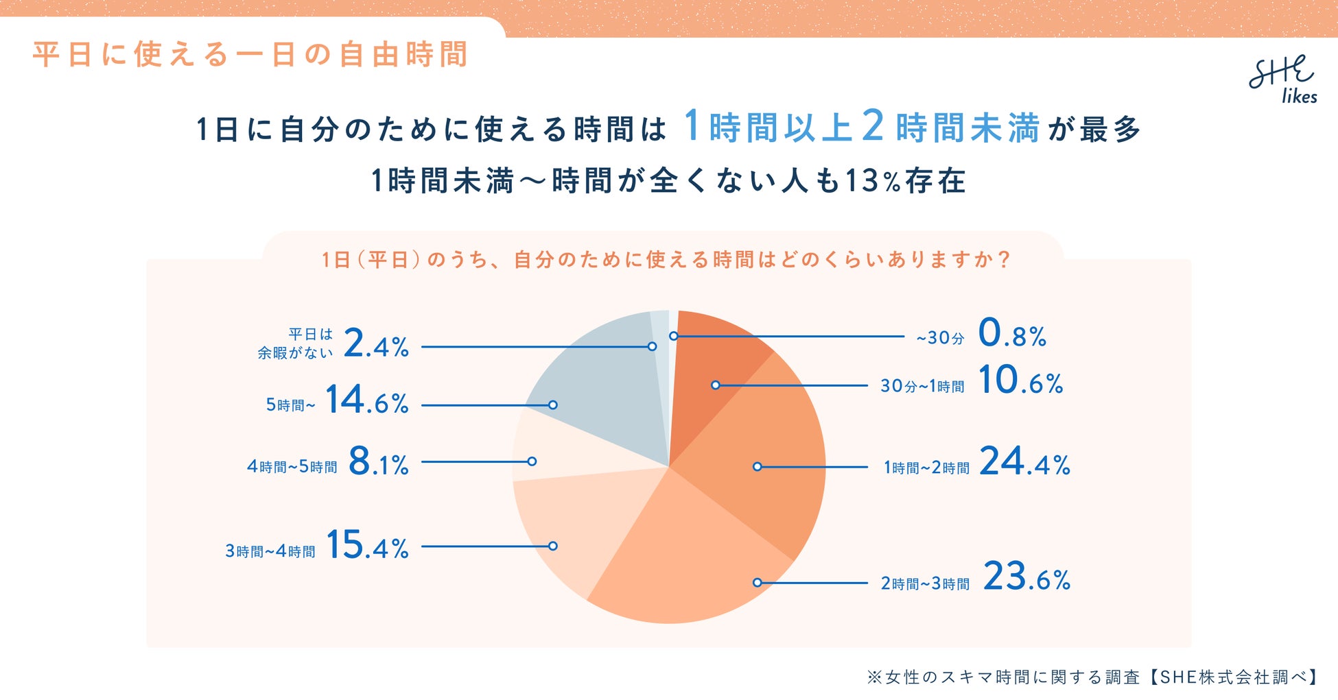 1日に自分のために使える時間は1時間以上2時間未満が最多。1時間未満〜時間が全くない人も13%存在