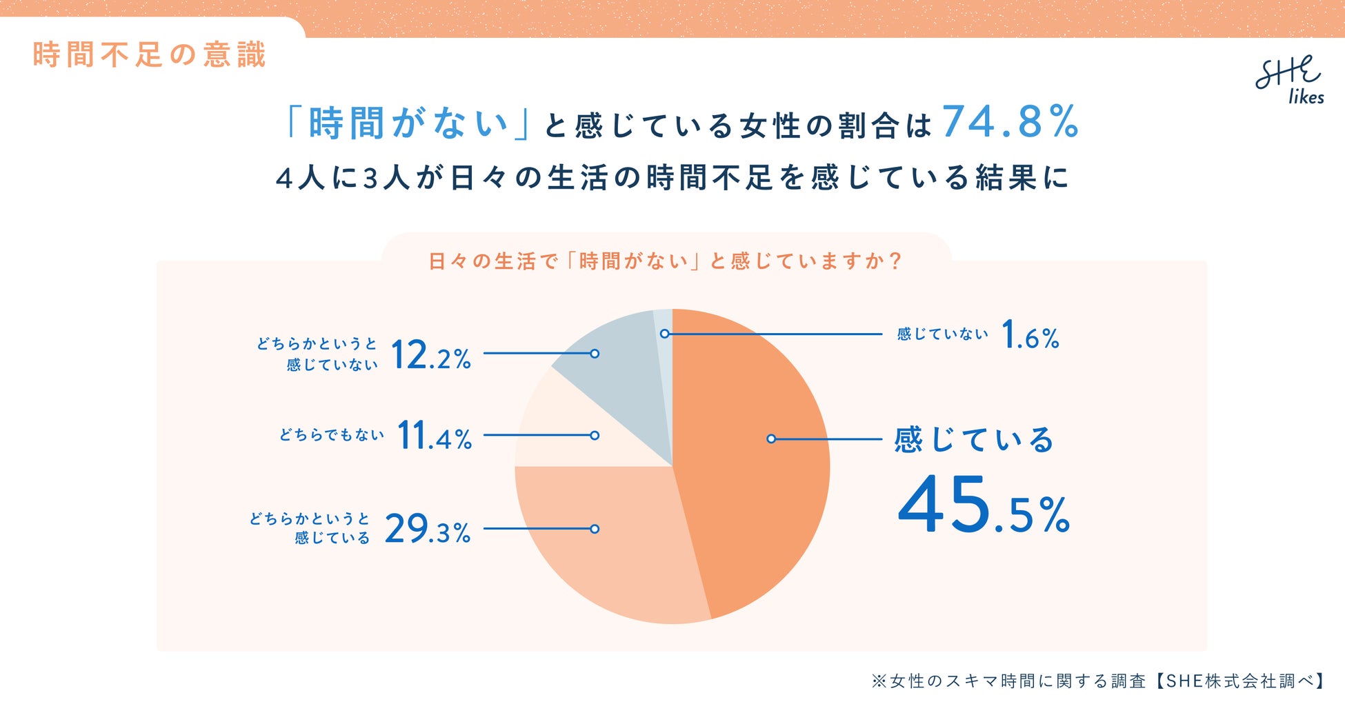 「時間がない」と感じている割合は74.8%。4人に3人が日々で生活の時間不足を感じている結果に
