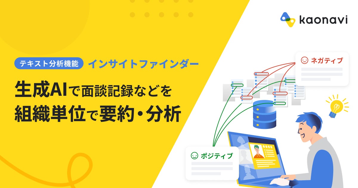 株式会社カオナビ(本社:東京都渋谷区、代表取締役社長 Co-CEO:佐藤 寛之、以下:当社)が提供するタレントマネジメントシステム「カオナビ」は、生成AIでテキスト分析を行う機能「インサイトファインダー」において、人材データベースとの連携を2025年5月29日(木)より開始します。