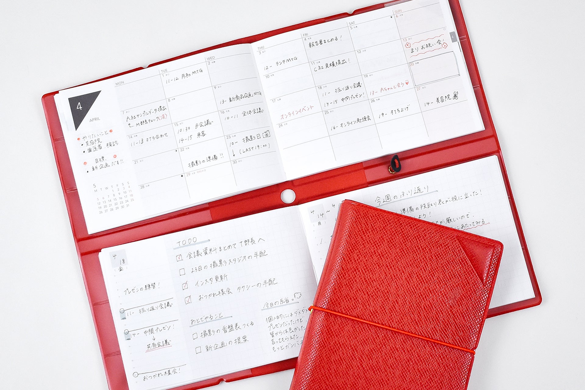 1年の前半(4月〜8月)、後半(9月〜3月)に分かれた2冊組です。これにより1冊が軽量化、しっかりと予定を書きたいけれど、荷物はコンパクトにしたいと考える層にヒットしました。