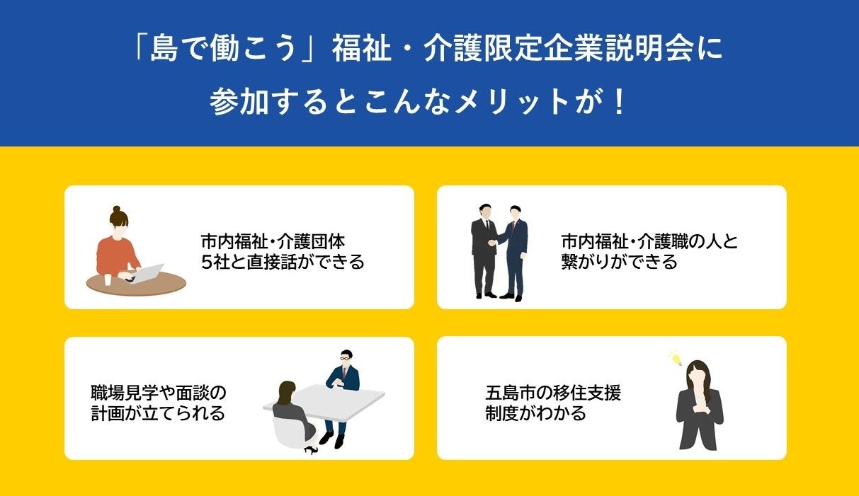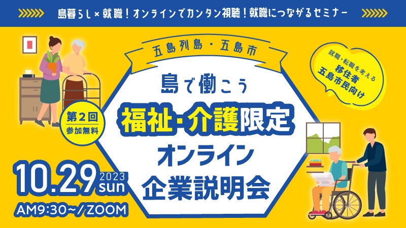 昨年に続き、今年も地域協働課(移住担当)と長寿介護課(福祉担当)、そして五島市内の福祉・介護団体企業5社による特別なオンライン説明会を開催します!