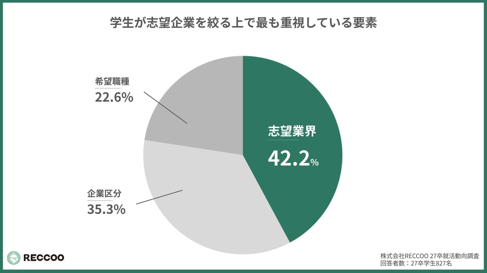 RECCOOの過去の調査では、学生の4割以上がまず「業界」で企業を絞り込むというデータもあり、人気業界以外の企業はそもそも優秀層の視界に入りにくくなっているのが現状です。これまで多用されてきた「上位校だからこのメッセージを送る」といった、学群で一括りにしてスカウト文を作成する手法は、もはや通用しにくくなっていると言えます。