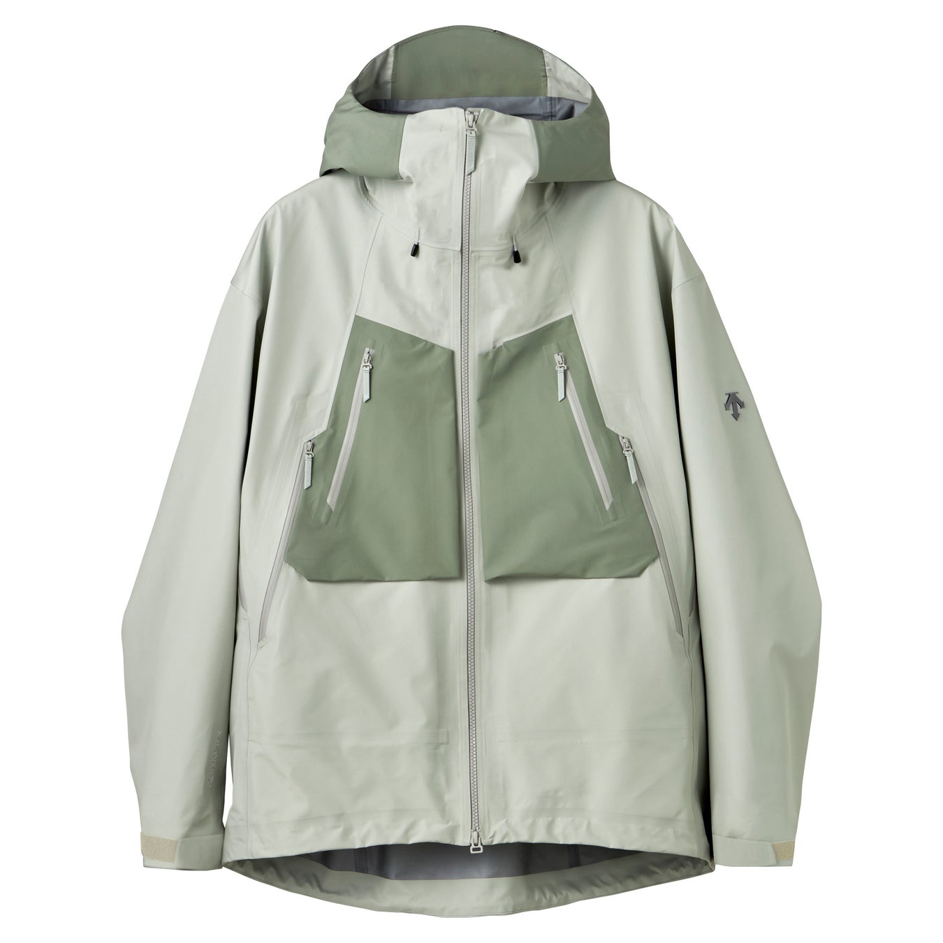 アメリカ・ゴア社が開発した、耐久性、防水透湿性、防風性を持ちながら、柔らかな着心地が特徴のGORE-TEX C-KNITを採用しています。脇下から両腕にかけたガゼットパターン設計を施し、腕をあげても裾が持ち上がりにくくアウトドアの動きに追随します。左右脇〜袖下にかけてベンチレーション用ファスナーを配置し、通気性を確保しています。首裏、左右前身頃、袖口のそれぞれ内側にある固定用パーツで、【AIR FLAKE PARKA】、又は【AIR FLAKE VEST】と組み合わせることが可能です。アウトドア活動での突然の環境の変化の体温調節にも役立ちます。