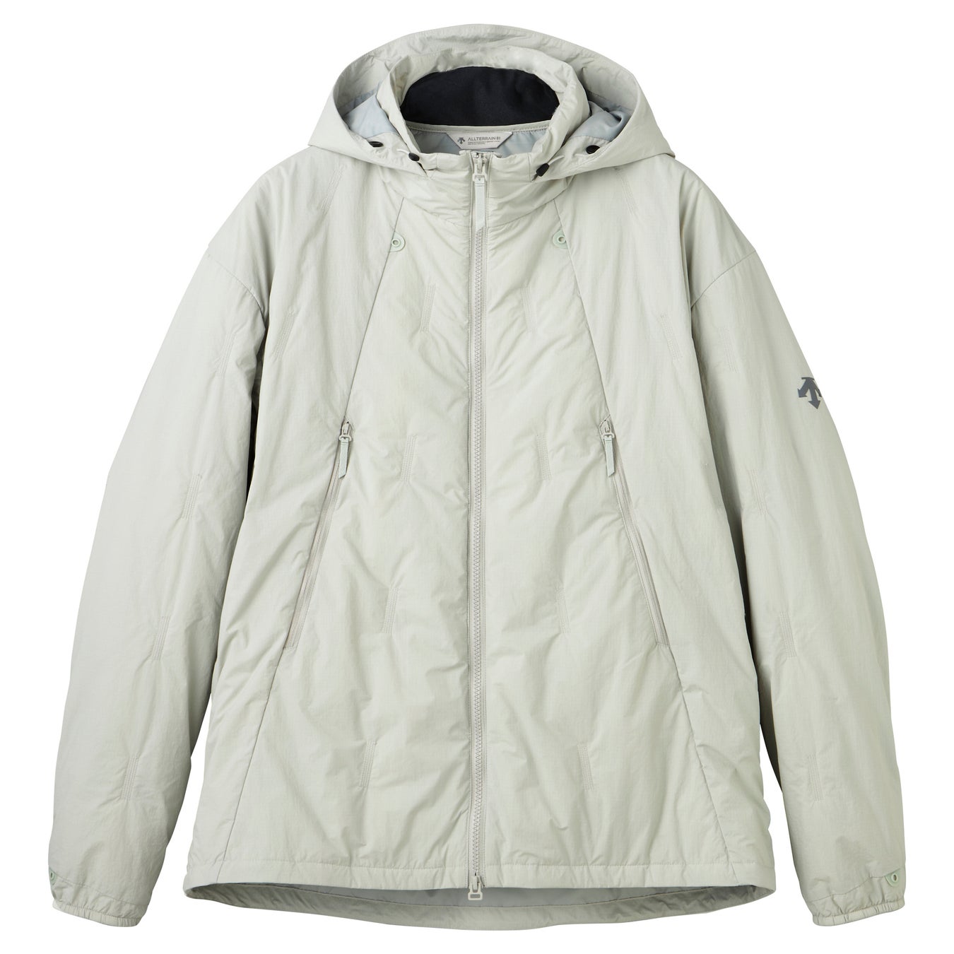 表地にはっ水機能を持つリサイクルナイロンを使用し、中わたに軽量性、保温性が特徴のエアーフレイクを封入したジャケットとベストです。またエアーフレイクは、かさ高性をもっているため、空気を含み、層を作ることで衣服の中を温かく保つことができます。身頃には、中わたを押さえるステッチを極力減らすカン止めを施し、コールドスポットを少なくする事により保温性を向上させています。前身頃、衿ぐり後ろ側などに配置された固定用パーツ TAB CAP を使用し、【GORE-TEX JACKET SP】と固定する事で、レイヤリングスタイル時にも快適に脱ぎ着をする事が可能です。