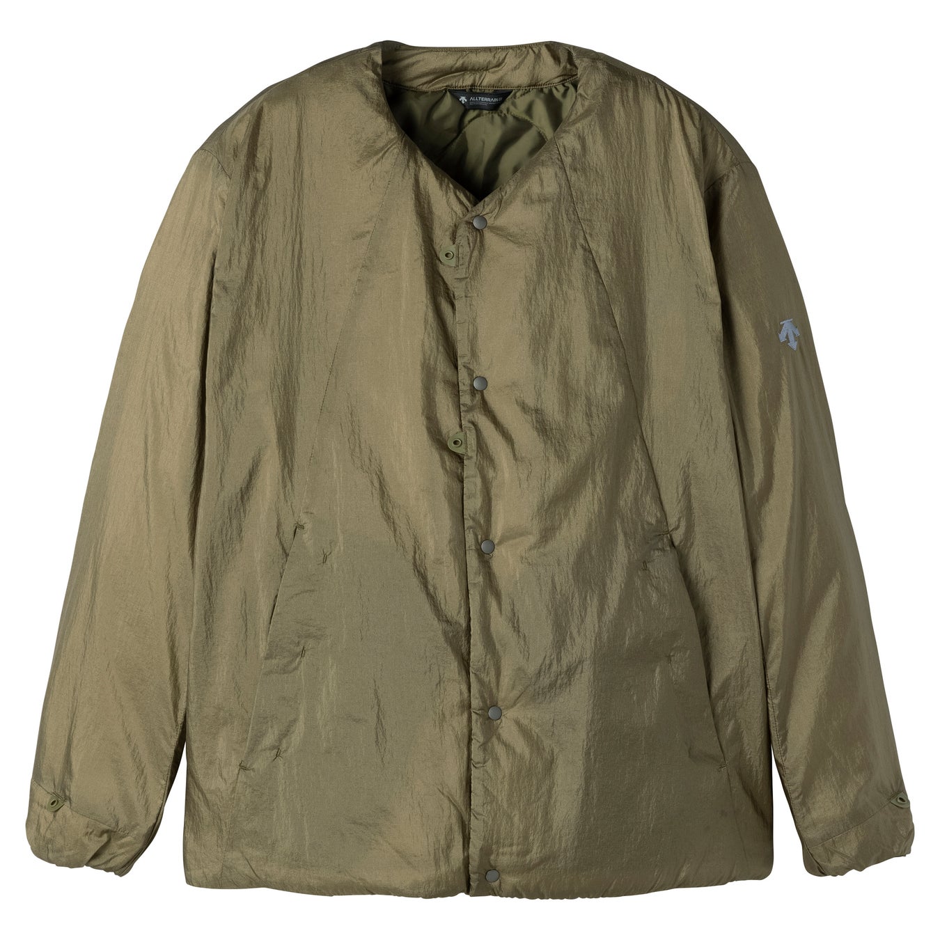 人工羽毛PRIMALOFTを中わたに使用し、ダウンと同等の保温性に加え、はっ水性を備えるアイテムです。表地に透湿、はっ水機能を持つPERTEX QUANTUM AIRを使用することで雨に濡れた時にも保温性能を維持します。ミドルレイヤーとしてアウターと合わせて重ね着も可能。フロント、袖口、内衿のタブを使用する事で【GORE-TEX COAT (DOMWGC33)】と連結可能で、更に保温性を高める事が出来ます。