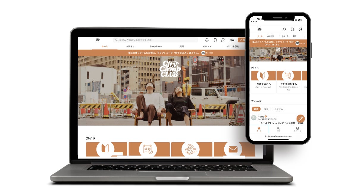 コミュニティサクセスプラットフォーム「Commune(コミューン)」を提供するコミューン株式会社は、ライフスタイルブランド事業を展開するCityCamp株式会社が運営する都市とキャンプのカルチャーを融合させたコミュニティBAR「CityCamp(シティーキャンプ)」のオンラインコミュニティにCommuneが導入されたことをお知らせいたします。