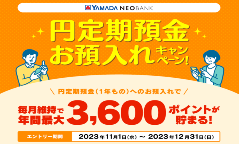 ヤマダNEOBANK年間で最大3,600ポイントが貯まる!「円定期預金(1年もの)お預入れキャンペーン」開催のお知らせ