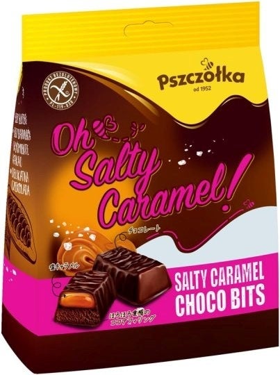 商品特徴:甘さ控えめのチョコレート味フィリングと塩キャラメルシロップをダークチョコレートでコーティング。便利な個包装仕様。