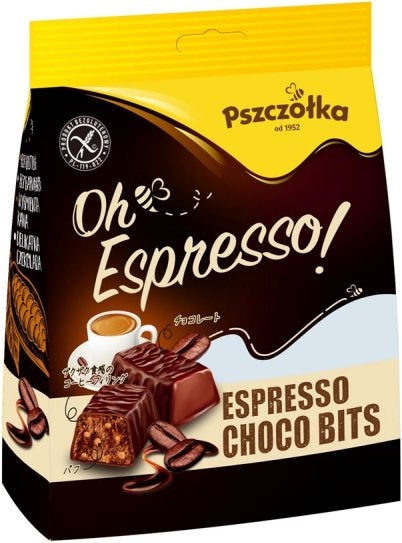 商品特徴:ライスパフ入りのエスプレッソ味フィリングをダークチョコレートでコーティング。便利な個包装仕様。