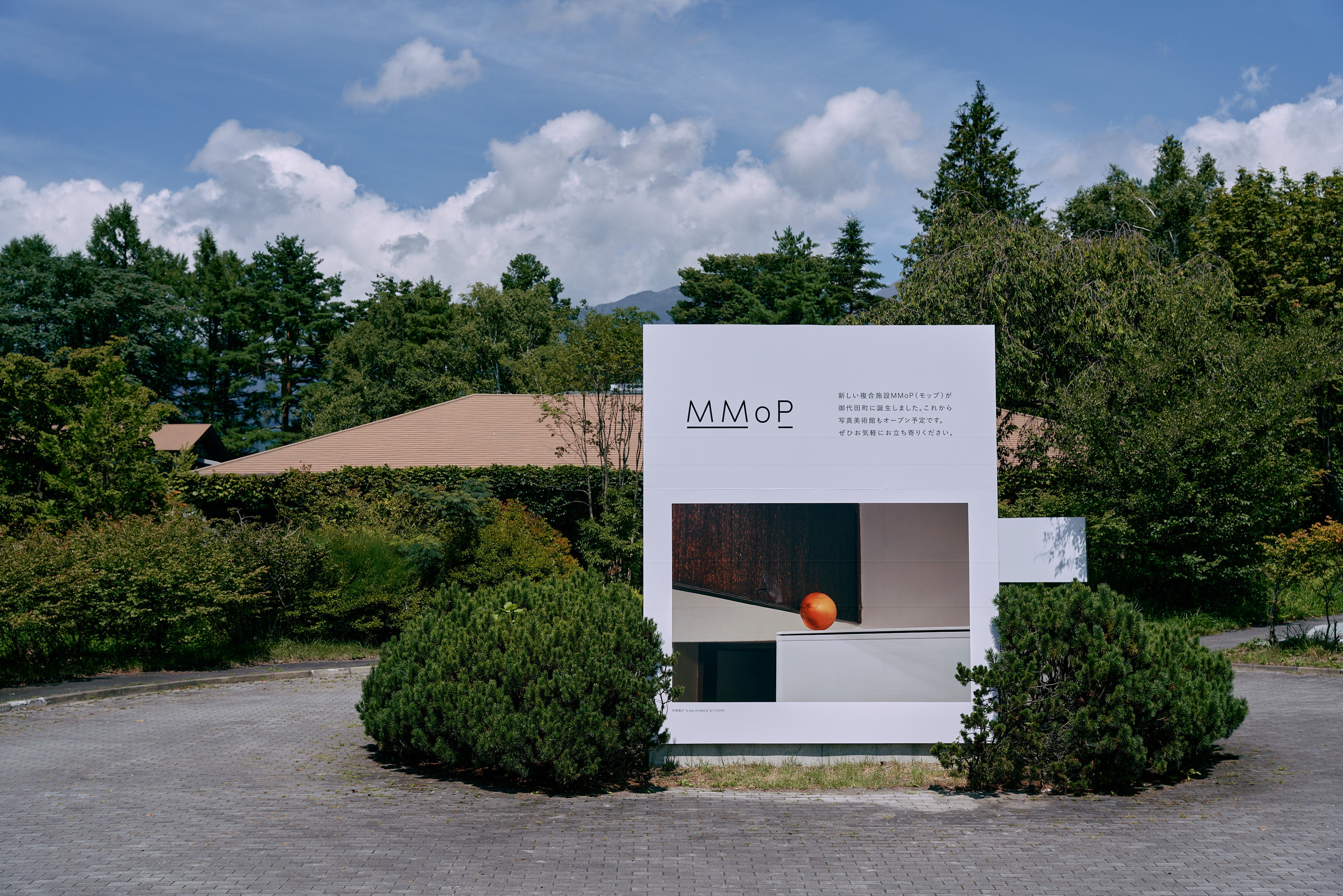 「MMoP」のあるエリアは御代田町役場に隣接し、かつてメルシャン軽井沢美術館を中心に、県内外から訪れる人々を魅了していました。2015年、御代田町とアマナは「写真をテーマにしたまちづくり事業」の協業を開始し、フォトフェスティバルの開催とメルシャン軽井沢美術館跡地を活用した美術館のオープンに向けて、2018年5月に協定書を締結。2018年夏・2019年秋には、御代田町と共同で、同エリアをメイン会場として「浅間国際フォトフェスティバル PHOTO MIYOTA」を開催しました。