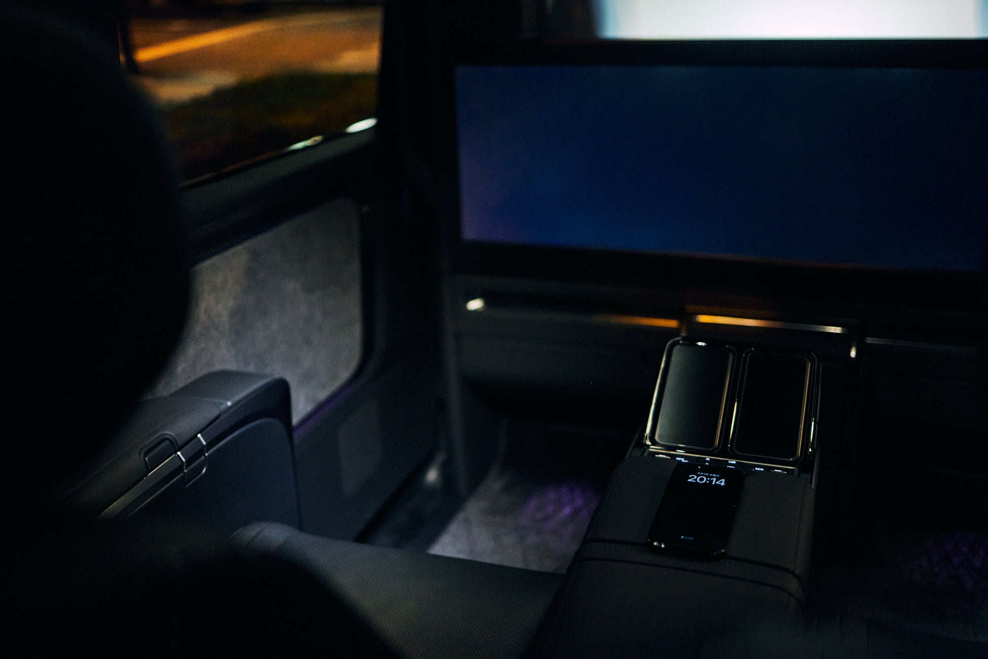 車内は、ゆったりと足が伸ばせる個室空間で、水やおしぼりなども常備しています。その他、車内にはwi-fiも完備しており、正面のモニターで映像コンテンツの視聴やZoom会議など、お客様のニーズや用途に合わせてご利用いただけます。マットや香りなどをホテル仕様にカスタマイズしていただくことも可能です。