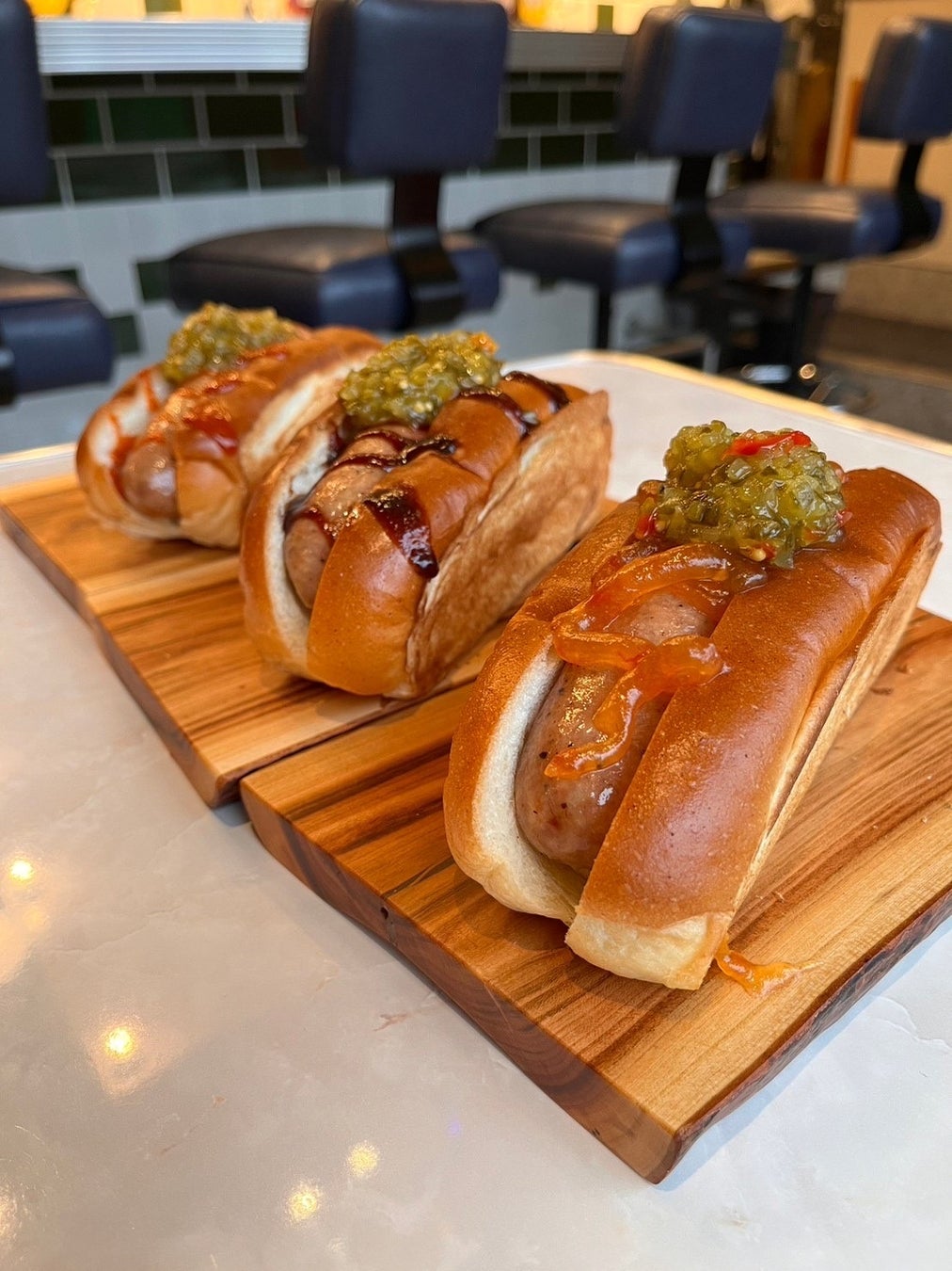 <限定メニュー>隅田川に浮かぶ船に見立てたSUMIDAGAWA DOGを、期間限定で3スタイルでご用意。