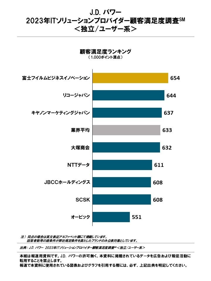 J.D. パワー 2023年ITソリューションプロバイダー顧客満足度<独立/ユーザー系>No.1を発表