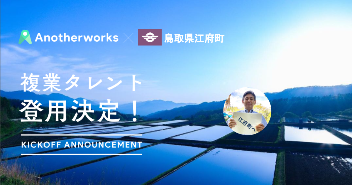 地方創生を推進する複業マッチングプラットフォーム「複業クラウド for Public」を展開する株式会社Another works(本社:東京都港区、代表取締役:大林 尚朝)は、2023年3月24日、鳥取県江府町(町長:白石祐治)に複業人材を登用する実証実験において、即戦力の複業アドバイザー1名の参画が決定したことをお知らせいたします。