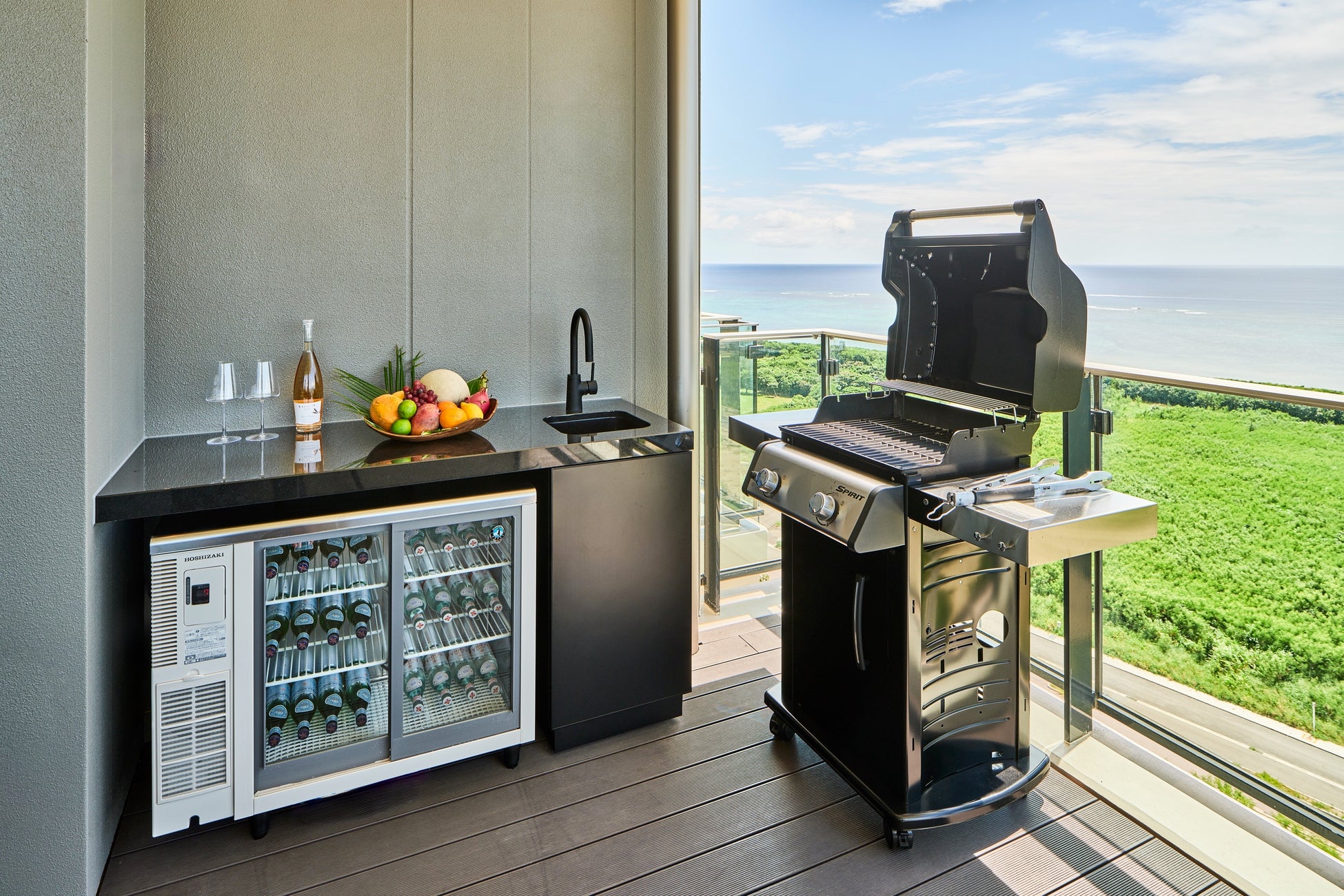 「ザ・セブンペントハウス」は、ホテル最上階の2フロアに広がる400㎡超の贅沢なメゾネットスイートルームで、客室は、ベッドルーム2部屋、ミニバー・ワインセラー、プロジェクターの設備から、バスルーム、テラスジャグジー、プライベートサウナを1つずつ、メインダイニング、アウトドアリビングを備え最大8名までご宿泊いただけます。「ザ・セブンペントハウス」ご宿泊のお客様には、新石垣空港からホテルまでの無料送迎や特別なBBQプランもご用意しております。石垣島の美しいパノラマビューを楽しみながら、専用のリビングとダイニングで、家族や友人とリラックスしたひとときをお過ごしいただけます。