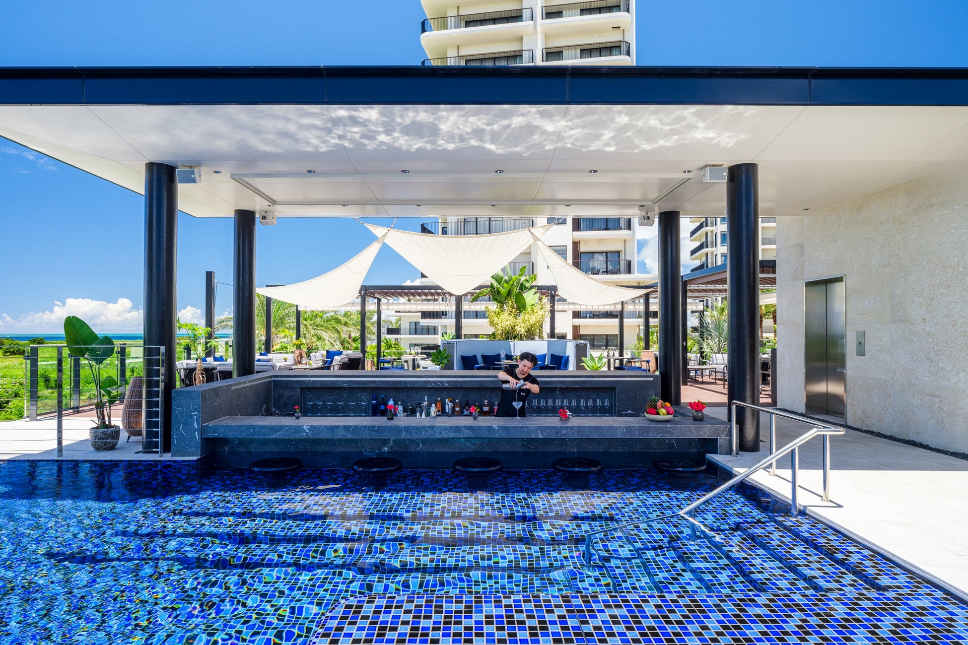 メインダイニングのレストラン「BATIDA」では地元食材を使用したラテンイタリア料理をお楽しみいただき、プールサイドバーではオリジナルカクテルをはじめ、プールシーンにぴったりなトロピカルドリンクやお食事をご用意します。地下フロアのナイトラウンジ「Red.」では200種類のジンやシーシャが楽しめ、ゲスト一人ひとりに合わせたラグジュアリーステイを演出します。