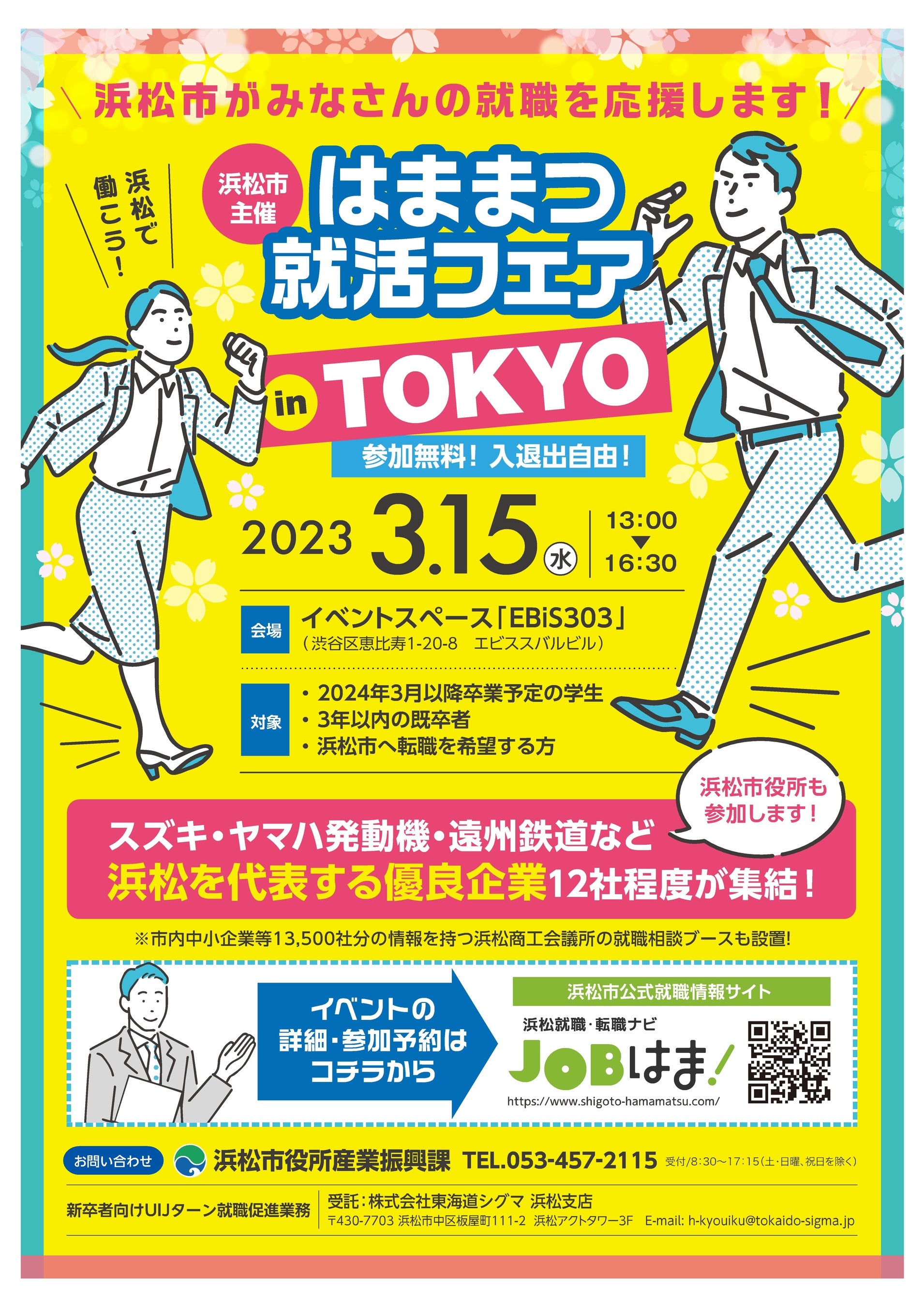 3月15日(水)東京都渋谷区恵比寿にて静岡県浜松市内企業の説明会を開催します。