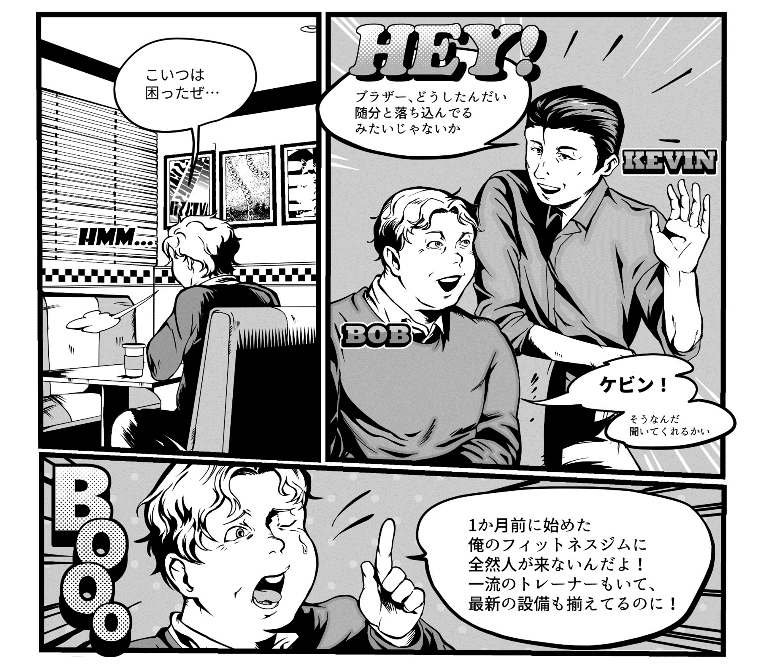 「1カ月前に始めた俺のフィットネスジムに全然人が来ないんだよ!一流のトレーナーもいて、最新の設備も揃えているのに!」