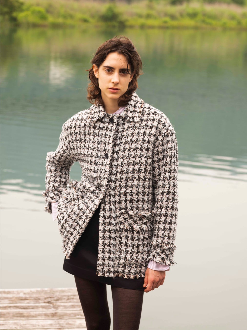 程よいショールカラーとビックポケットがポイントのジャケットは